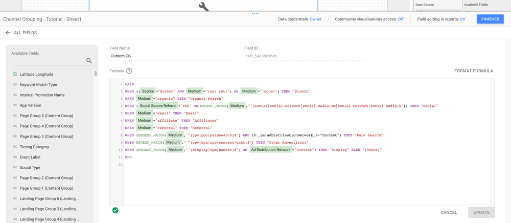 2. How to recreate a Custom Channel Grouping in Google Data Studio